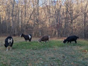 We proudly feed high quality, local orchard grass, Western Alfalfa, Kalmbach grain, and Sweetlix goat minerals as well as special treats like bananas, carrots, peanuts, apple peels, etc. Our does are on a dry lot which helps reduce our parasite load dramatically and they have daily access to forage in the woods throughout our property.